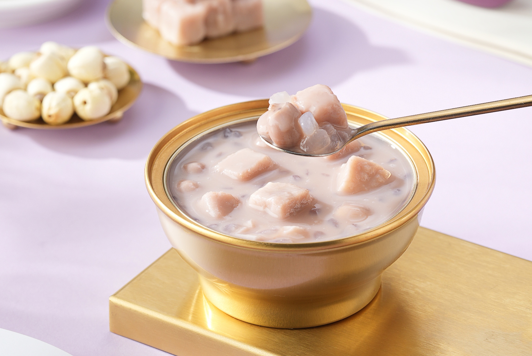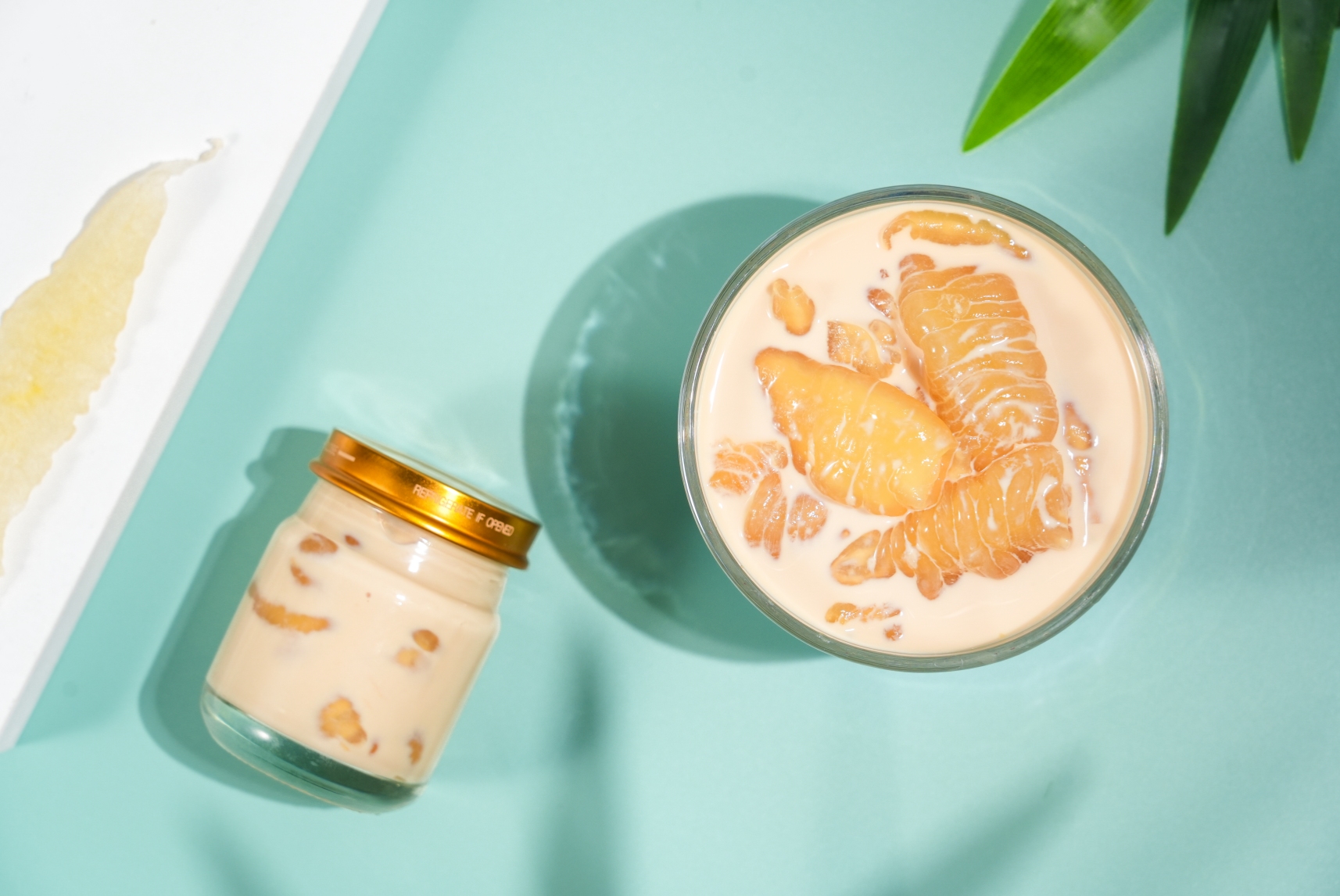 分段控温炖煮技术,模拟手工炖煮,析出燕窝中的蛋白质、氨基酸及燕窝酸等营养物质,口感鲜润爽滑,外观胶滑透亮。